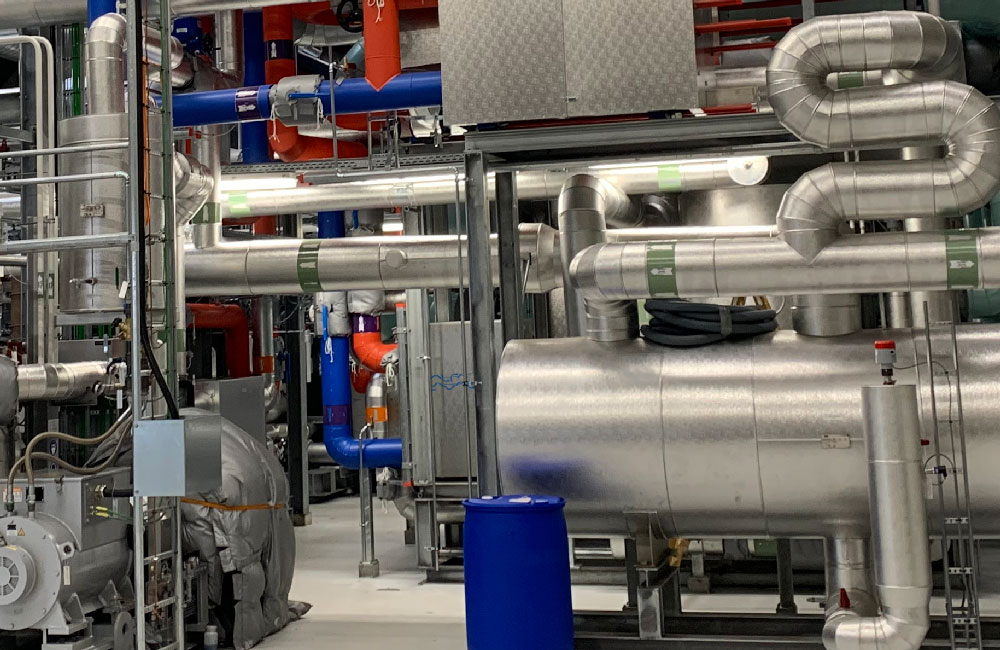 The heat pump installations are made in three sections each supplying about a third of the total heat to deliver. IESenergy ApS delivered highly efficient industrial heat pumps designed in cooperation with leading main component suppliers such as Mayekawa (screw compressors) and Alfa Laval (semi-welded plate heat exchangers). The heat pump technology chosen is based on the latest development of industrial heat pumps avoiding F-gases and instead benefitting the efficient and future-proof natural refrigerant ammonia.