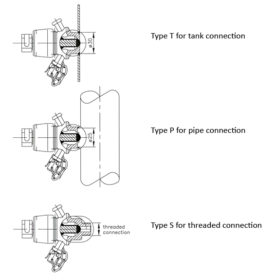 La válvula está disponible con tres tipos diferentes de conexión: tanque, tubería y roscado. Funcionan en base al mismo principio. Antes de que la válvula se abra, el cierre debe colocarse en la conexión de la manguera superior. Cuando el mando se gira a la posición horizontal, la muestra comienza a fluir a través de la salida inferior. Cuando el mando se devuelve a la posición vertical, la válvula se cierra y el mando puede retirarse si es necesario. Se pueden tomar muestras asépticas mediante un tipo de válvula especial con micropuerto. Si retira la tapa roja, puede insertar una aguja hipodérmica a través de un canal central que va al interior de la membrana para tomar una muestra aséptica con la válvula en posición cerrada. Tras la toma de muestras, lave la válvula con agua o alcohol. La válvula se puede esterilizar con alcohol o vapor.